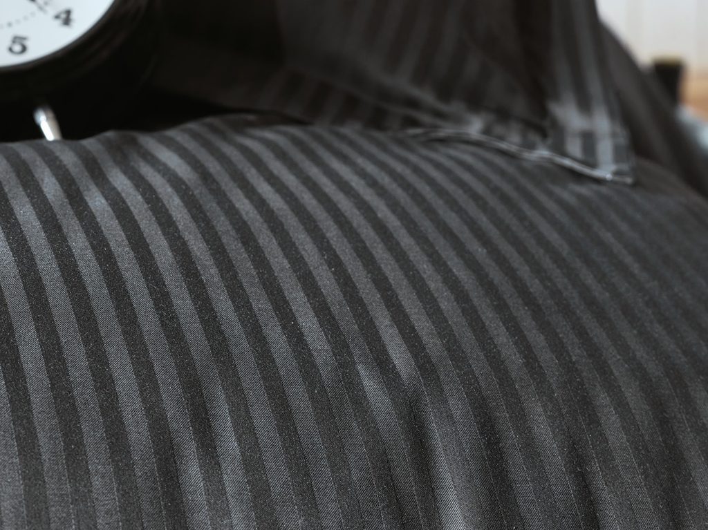 Nádherně temně černé povlečení v luxusním provedení elegantního proužku. Nedejte se odradit tmavou barvou, povlečení bude v každé decentní ložnici vypadat velmi přepychově.