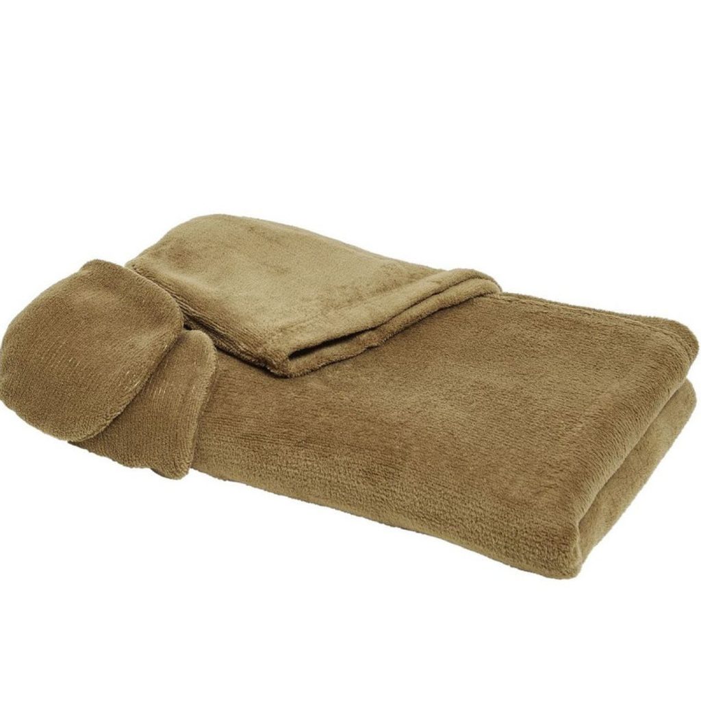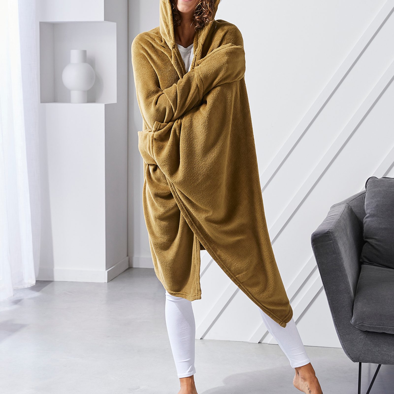 Měkoučký pléd lákající k zachumlání s kapucí. Po stranách plédu dvě "rukavičky", do kterých si zastrčíte studené ruce.