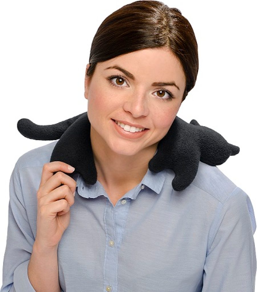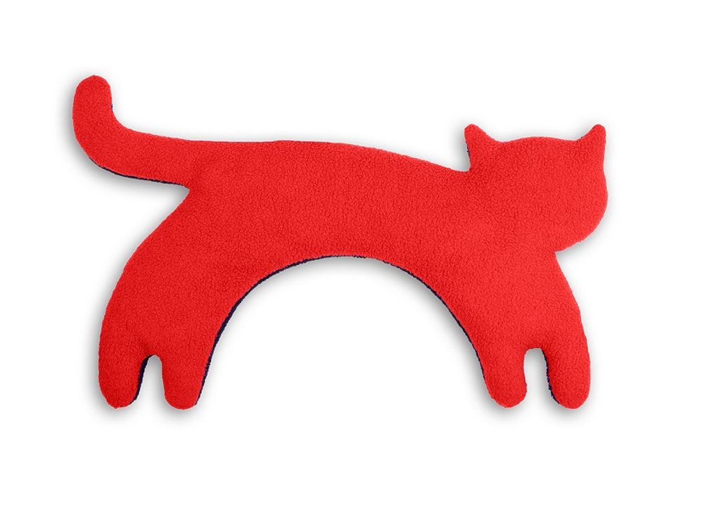 Polštářek ve tvaru kočky, která Vás za krkem příjemně zahřeje. Z jedné strany červený fleece a z druhé strany černá bavlna.
