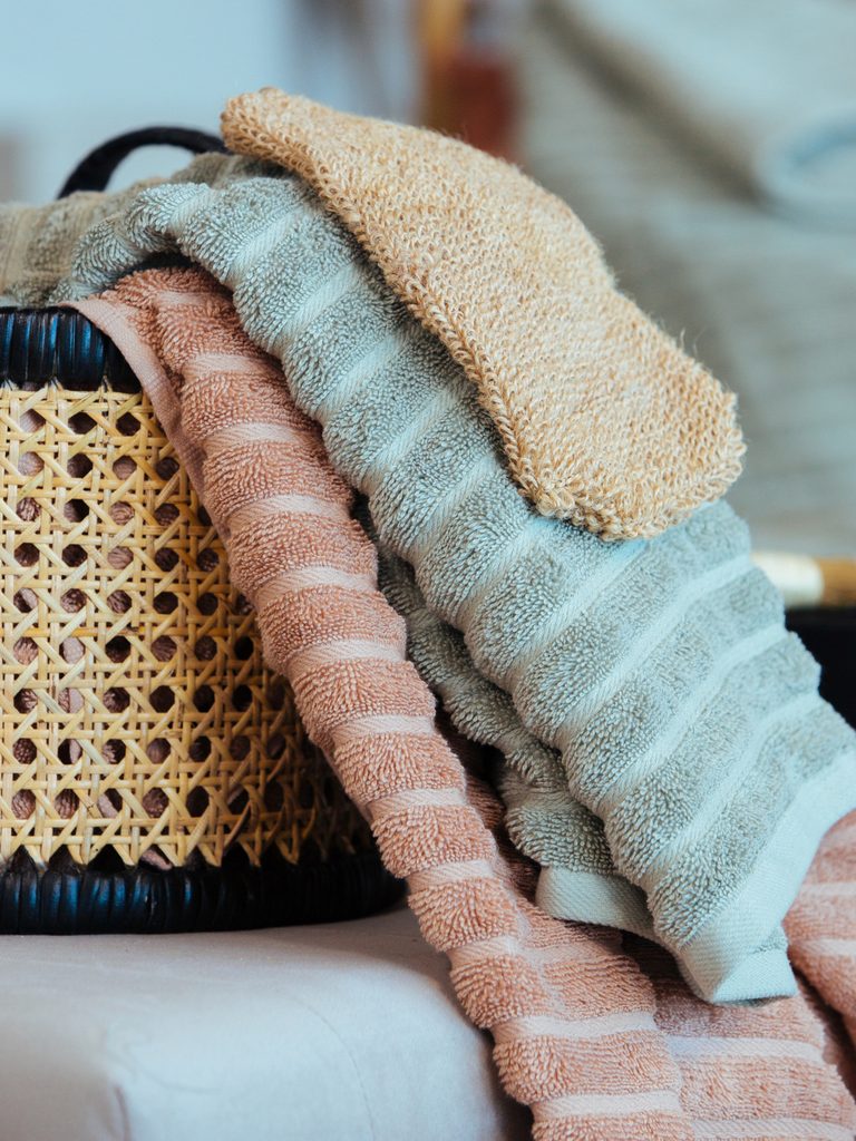 Luxusní ručníky v jemnějších barvách s dekorativními reliéfními liniemi jsou vyrobeny ze 100% bavlny. Vzhledem k vysoké gramáži mají výbornou savost. Delší smyčky dělají ručníky jemné na dotek.