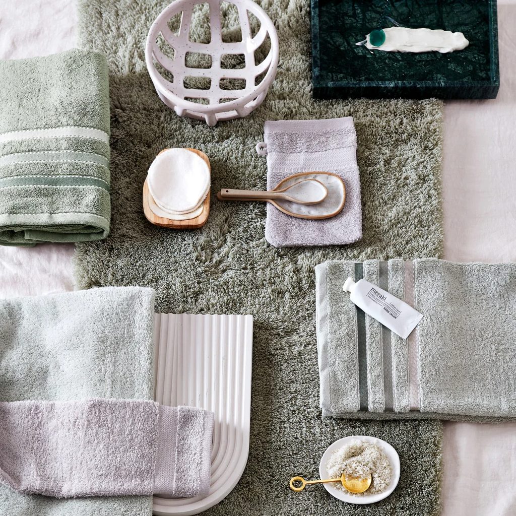Jednobarevné ručníky s dekorativními bordurou - lesklé pruhy v různých odstínech s bílým prošitím jsou stylovým detailem.