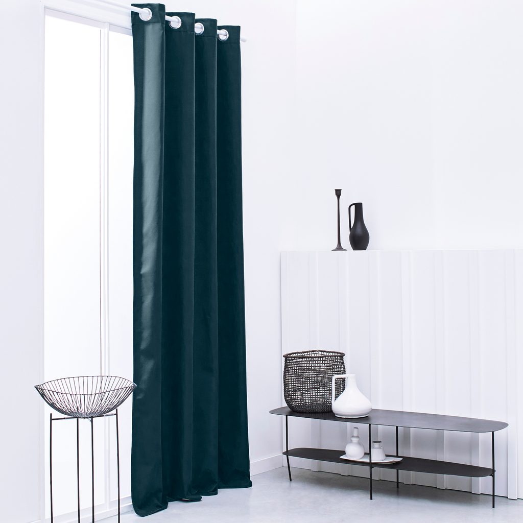 Závěs není 100% zatemňovací. Líc závěsu je hladký, rub je plyšový. Kovová oka mají vnitřní průměr cca 4 cm.
